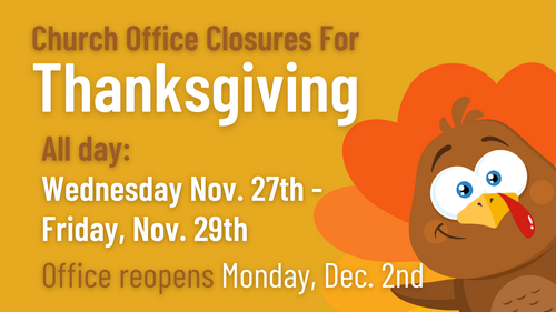 The office will be closed Wednesday, November 27th, with some staff working remotely. The office will be closed for the Thanksgiving holiday on Thursday, November 28th, and Friday, November 29th, for staff to enjoy time with their families. Happy Thanksgiving to everyone!