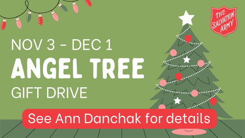 All Angel Tree unwrapped gift items are due THIS Sunday, December 1st. Place your items under the tree located in the 15th St. Lobby area. Go and Serve will deliver all donations to the Salvation Army who will distribute them to the families.
