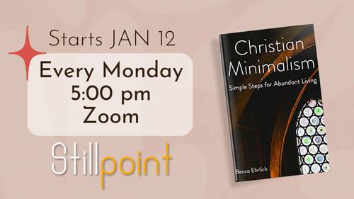 The Stillpoint Monday 5:00 ZOOM class will begin a new book study on January 12th. We hope you’ll join us for our weekly devotion and book discussion with our newly-selected book: Christian Minimalism by Becca Ehrlich.
