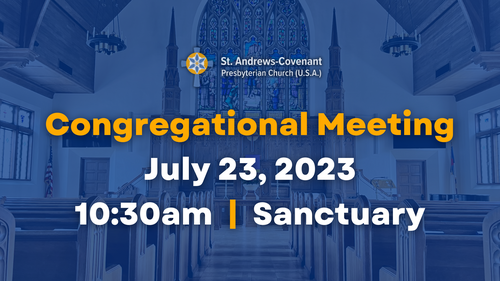Congregational Meeting July 23 The Session has called a congregational meeting at 10:30 on July 23 for the purpose of electing an Associate Pastor Nominating Committee.