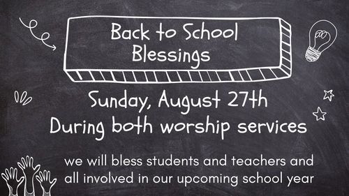 Help us celebrate the start of the new school year with a special Back to School Blessing during both worship services.