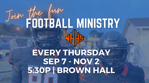 Volunteer to help nourish and nurture New Hanover High School football players during their weekly "pre-game" team meal. Contact David Massey for details.
