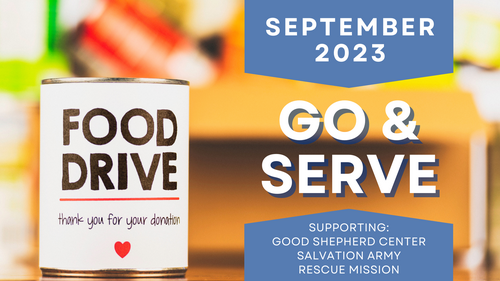 For the month of September, we'll be collecting non-perishable foods for Good Shepherd, Salvation Army, and the Rescue Mission. Suggested food items include cereal, pasta, pasta sauce, canned fruits and vegetables (including #10 cans), canned soup, packaged snacks, and canned chicken or tuna. Please drop your donations in the bin in the 15th Street lobby.