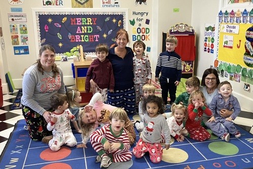 Merry Christmas from our preschool staff and families! December has been a month of high energy, lots of love, laughter, learning about Jesus, singing, and creating gifts for parents. This past week we dressed in Christmas colors and on Thursday we had pajama day and hot cocoa. Well, warm to cool cocoa. Fun was had by all.