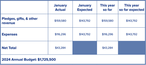 Financial updates will be provided each month. If you have any questions, please contact Susan Dykes, Financial Administrator, 910-762-9693x207, sdykes@sacpc.org; or our Church Treasurer, Ed Hobson, treasurer@sacpc.org.