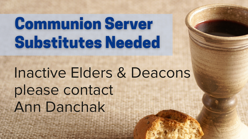 Ordained Elders and Deacons have the honor of serving communion at SACPC. Many of us have been ordained at other churches and are not active at the moment. If you are an ordained elder or deacon and would like to serve communion at SACPC occasionally, please contact Ann Danchak to learn more.