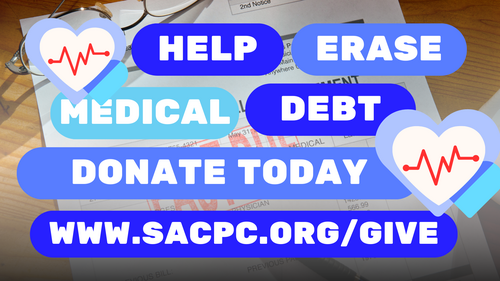 Please send contributions for this project to SACPC and list RIP Medical Debt Relief in the Memo line. Ways to give: