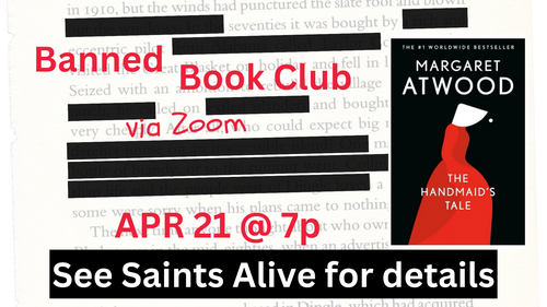 Our banned book club is now open to all! Our next book is The Handmaid’s Tale by Margaret Atwood - read the book and then join us on Zoom as English teacher extraordinaire Amy Stuart leads our discussion. Sunday, April 21st at 7pm on Zoom.