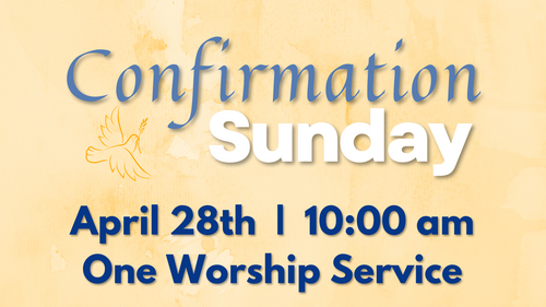 Save the Date (especially because we are adjusting our worship time!) Confirmation Sunday will be April 28th and we will be welcoming our Confirmands at ONE UNITY SERVICE AT 10am that day. We hope you will join us as these young people join our church.