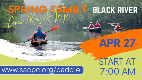 This is a free, guided 6-mile paddle along the scenic and beautiful Black River. It is a very easy paddle by canoe or kayak and great for families with children who like to explore the outdoors. We'll enjoy many beautiful cypress trees on this stretch of the river and the water is very clean because there is no industry located nearby.