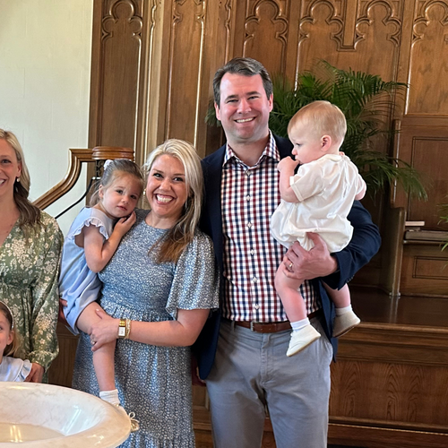 Austyn Gray Rouse, daughter of Jordan Vance Rouse and Alice Bullock Rouse, born July 27, 2023, was baptized on April 14, 2024.