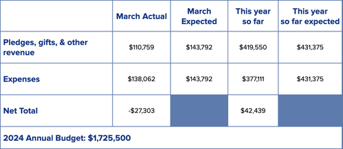Financial updates will be provided each month. If you have any questions, please contact Susan Dykes, Financial Administrator, 910-762-9693x207, sdykes@sacpc.org; or our Church Treasurer, Ed Hobson, treasurer@sacpc.org.