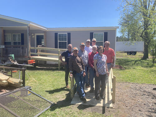The Shelter Care team, led by Palmer Sineath, completed another ramp Saturday in Rocky Point. Other SACPC participants were Rick Wheeler, Bill Aman, David Massey, Jack Richardson, John Bohbrink, and Gary Smith. The homeowner wrote, "To all God's helpers from St. Andrews, My husband and I are so grateful for all you have done to give him mobility to get into and out of our home. Thank you so much."
