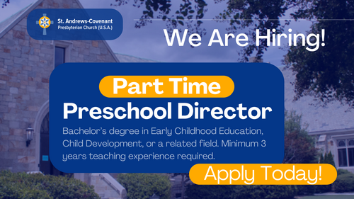 Questions and resumes may be sent to SACPCPreschool@gmail.com or you may speak with one of us.