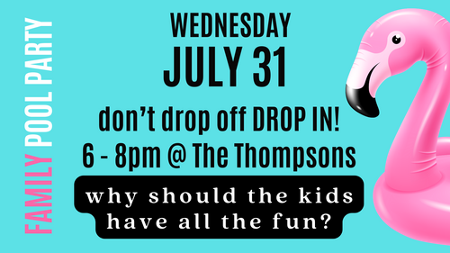 JOIN US for a Family Pool Party! This event is for Children & Youth ministry families. Come when you can, leave when you must. Snacks will be provided (not dinner).