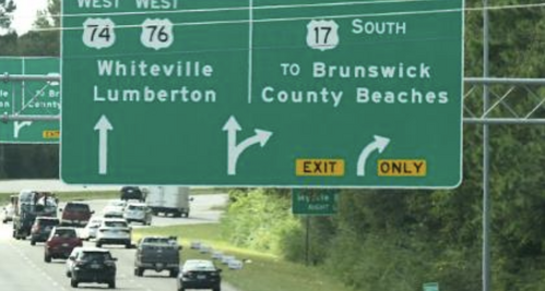 Isabel Holmes Bridge, signs direct you to Whiteville. From the Cape Fear Memorial Bridge or I40, you’re directed towards