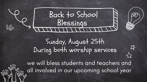 On Sunday, August 25th, at 9:00 am and 11:00 am worship services, we will bless our teachers and students as they return to school. While we always hold you in our prayers throughout the school year we want to take this opportunity to bless the beginning of another school year for those who teach and those who are receiving the gift of teaching.