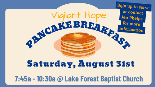 Join us the last Saturday of even months as SACPC volunteers prepare and enjoy breakfast with our neighbors at Vigilant Hope. There are many ways to serve--with your time or your donations. Click the link below to sign up or see the supply list. See Jen Phelps for more details.