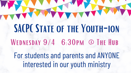 Students and parents and ANYONE interested in our Youth Ministry are invited to The HUB to learn about what we have been doing - what we will be up to - and maybe even how to get involved.