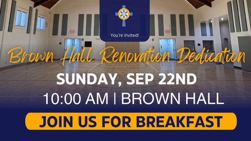 Join us for breakfast and a dedication of our newly-renovated Brown Hall! We will enjoy a time of fellowship and gratitude for the generous gift the Rudisill family gave in honor of Debbie as we dedicate Brown Hall to the glory of God.