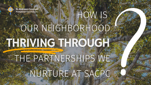 Thank you for contributing to the work and love of Jesus through St. Andrews-Covenant Presbyterian Church. Your gifts enable us to stay Faithfully Present in Our Community by providing beneficial programs and spiritual events that lift up, motivate, and provide joy!