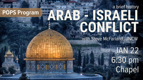 The Let’s Talk About It Team will host A Brief History of the Arab-Israeli conflict with guest speaker UNCW History Professor Steve McFarland. Steve teaches global history and the history of technology and air power in the Department of History at UNCW. He will lead us through a brief review of the Israeli-Palestinian conflict and how it affects the current situation in Gaza.