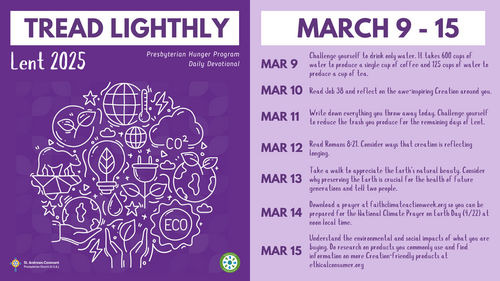 Presbyterian Hunger's Tread Lightly for Lent Daily Reflection Calendar