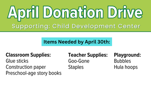 Middle and high school students are invited to gather at the church the morning of Monday, April 14th: drop off anytime between 8:00 am - 12:00 pm.