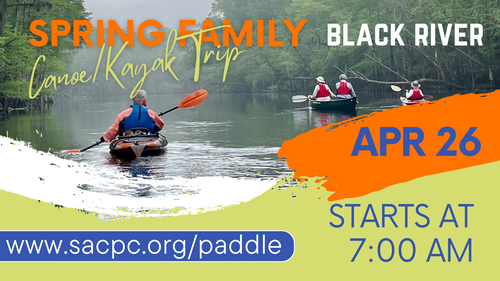 This is a free, guided 6-mile paddle along the scenic and beautiful Black River. It is a very easy paddle by canoe or kayak and great for families with children who like to explore the outdoors. We'll enjoy many beautiful cypress trees on this stretch of the river and the water is very clean because there is no industry located nearby.