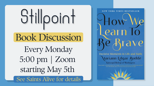 Stillpoint is a group of women who meet via Zoom each Monday from 5:00 pm - 6:00 pm. We invite you to join us as we begin this book discussion next Monday, May 5th. To receive the link or if you have questions, contact Shelley Hobson or Lynn Kozik.