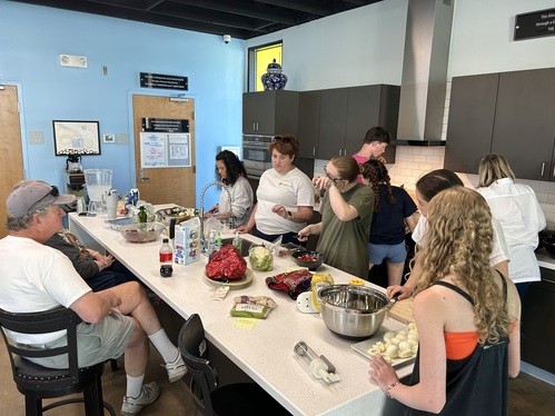 We spent time cleaning up at The HUB, then made lunch for our staff and casseroles for the Domestic Violence Shelter. After lunch we traveled to The Diaper Bank to spend time learning about their mission and packaging diapers and orders. Then - some grocery shopping and to Eden Village to prepare and serve their Community Dinner. We also had the opportunity to visit their newer sites.