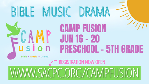 We only have a few spots left for children age three through those having completed 5th grade at our Summer Camp Fusion program! Camp Fusion is coming up June 16-20th and we don't want you to miss out! Tell your friends and neighbors! The theme this year is "CAMP FUSION - PUTTING OUR TRUST IN GOD"