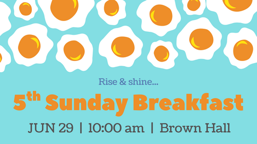 Come join your fellow church members for fun and fellowship at our 5th Sunday Breakfast, June 29th between services from 10:00 am - 11:00 am in Brown Hall. A fantastic breakfast will be prepared by our own Jackie Norton along with our resident pancake chefs. A love basket will be available for donations.
