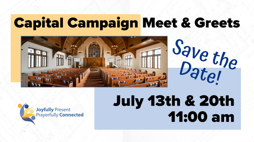 Come meet the Capital Campaign Team, learn more about our renovation projects and get answers to any questions you may have. We will host two Meet & Greets directly following the 10:00 am worship service on Sunday, July 13th & Sunday, 20th. More details coming soon!