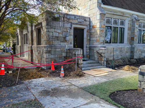 If you have driven or walked by the Sanctuary end of the building recently, you may be wondering why there is a large mound of dirt and a long trench on the Market Street side. Our contractors recently discovered that the very old main cast iron pipe underneath the Sanctuary, is highly corroded and in need of immediate repair. So they are installing a new CPVC pipe, running it outside the Sanctuary and then connecting through a vent to the good copper piping inside. There will be a few hours at some point in the week when water will be shut off to make the final connection. But we are trying to plan for minimal disruption. Thank you for your patience as we continue to improve our building!