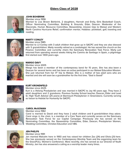During a called meeting on Sunday, October 12 at 10:50 am the congregation approved new Elders & Deacons for the Class of 2028. Click the link below to download a copy of the report, or scroll further to preview.