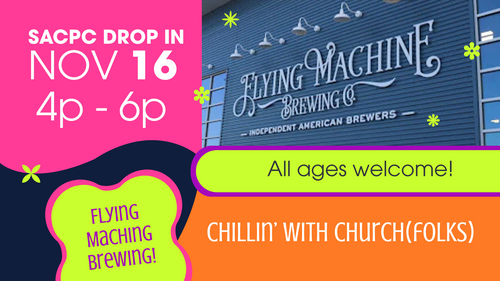 Looking for time to connect with your fellow church folks, of all ages, outside of the walls of SACPC? Please drop in and join us at Flying Machine Brewing (3130 Randall Parkway) from 4 to 6 p.m. on Sunday, November 16th.