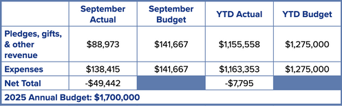 Financial updates will be provided each month. If you have any questions, please contact Susan Dykes, Financial Administrator, 910-762-9693x207, sdykes@sacpc.org; or our Church Treasurer, Ed Hobson, treasurer@sacpc.org.