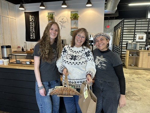 One of our Block partners, Vigilant Hope's Roastery (located at the corner of 16th and Dock) held a Birthday Raffle to celebrate 5 years in business! For each coffee order you could enter the raffle to win a variety of prizes donated by various businesses. Our own Catheryn Thomas won the raffle and was presented with many wonderful prizes! CONGRATULATION CATHERYN!!!