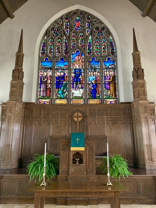 The stained-glass window located in our sanctuary was installed during the construction of the Church of the Covenant in 1917. This window represents our Scottish Presbyterian heritage and inspires our unselfish devotion to Christ. Placed in memory of founders, Alexander Sprunt and his wife Jane Dalziel Sprunt.