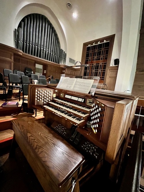 Our organ has more than 2.200 pipes spread over 50 ranks in the instrument and housed in two chambers on either side of the Gallery facing into the Choir Loft. The instrument is comprised of four "organs", swell, Great, Choir, and Pedal--played from a three manual console at the base of the Choir Loft.