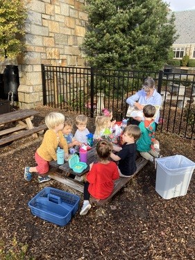 We use a theme-based curriculum that includes student-directed and teacher-directed activities as we strive to meet the needs of each child individually. Lessons around a theme usually contain art, math, reading, science, singing, dancing, and cooking. We use learning stations, circle time, yoga, chapel, Spanish, music, and our outdoor classroom to give each student a balanced education that will prepare them for the future.